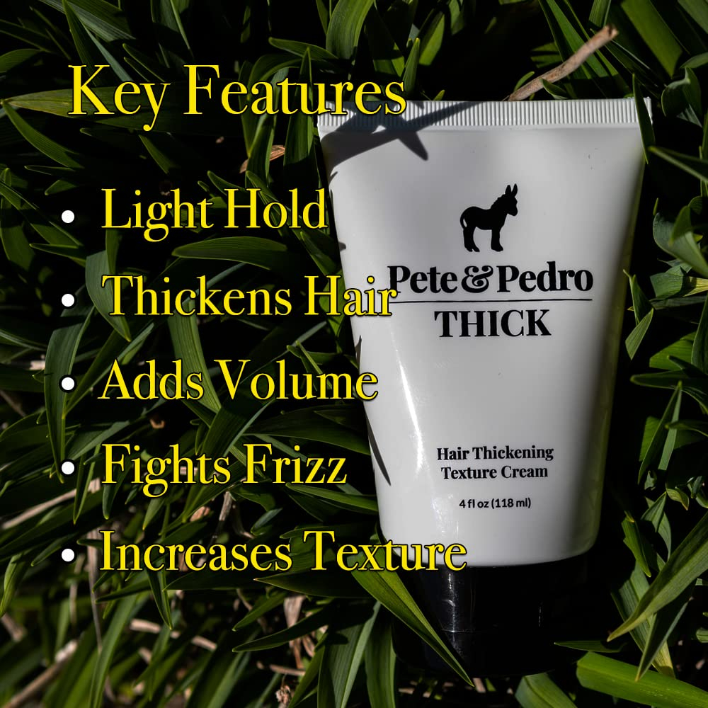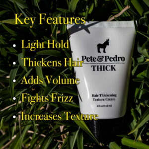 O THICK Hair Thickening & Texture Cream da Pete & Pedro é o produto perfeito para quem tem cabelos finos, finos ou finos que desejam um creme de textura modeladora leve para adicionar espessura, corpo, volume e plenitude aos cabelos. O creme modelador leve proporciona uma fixação leve sem a formação de grumos, volume e textura do cabelo. O creme de cabelo THICK também é incrível para combater o frizz/fly-away e é perfeito para cabelos com cachos e ondas naturais. Também cheira muito bem! Infundimos THICK com aminoácidos de trigo, óleo de coco e muito mais para garantir que até mesmo aqueles que estão ficando mais finos possam realçar melhor seus cabelos. Aplique uma pequena quantidade, pois um pouco vale muito. Para uma fixação leve, é um produto independente. Para uma fixação forte, aplicaríamos um pouco no cabelo seco com uma toalha e deixaríamos secar com um secador de cabelo ou apenas secar ao ar livre. Quando o cabelo estiver seco, você pode aplicar o segundo auxiliar de modelagem (massa, argila, etc.). Destaques: adiciona espessura e plenitude à queda de cabelo, cabelos finos promovem volume, textura e corpo incríveis. Oferece uma fixação leve e macia para um estilo tocável. Combate o crespo e melhora os cachos e ondas naturais, nutre e suaviza enquanto aumenta a espessura corporal. Creme de espessamento e textura do cabelo. para cabelos finos, finos ou ralos. Ótimo para cabelos grossos também. Ingredientes principais: aminoácidos de trigo, óleo de coco. Sem parabenos. Sem sulfato. Instruções: Um pouco vale muito – não use demais. Distribua uniformemente uma pequena quantidade pelos cabelos secos com uma toalha, descendo até as raízes. Para obter os melhores resultados, penteie o cabelo para garantir uma distribuição uniforme. Estilize de acordo com a aparência desejada. – Thick Is The Trick: o creme modelador de textura leve adiciona mega espessura, corpo, volume e plenitude ao cabelo com pouco brilho. Se você quer um pouco de textura em seu cabelo sem que os outros saibam que algo está em seu cabelo, este é o produto. Ótimo para homens e mulheres! – Ótimo para cabelos finos e finos: funciona para todos os tipos de cabelo, mas é especialmente ótimo para homens e mulheres que têm cabelos finos, finos, recuados ou ralos, pois adiciona espessura e volume. As mulheres também adoram! – Ingredientes de alta qualidade: Infundido com aminoácidos de trigo e óleo de coco, o produto para cabelo é super versátil. Também cheira muito bem com um aroma fresco de manga cítrica. Sem parabenos. Sem sulfato. – Frizz & Fly-Aways Fighter: Thick é ótimo para combater o frizz/fly-away e é perfeito para homens com alguns cachos e ondas que desejam uma fixação leve. – Apresentado no Shark Tank: iniciado em 2013, Pete & Pedro apareceu no Shark Tank e inclui uma linha premium completa de produtos masculinos de higiene, cabelo, fragrâncias, barba e corpo.