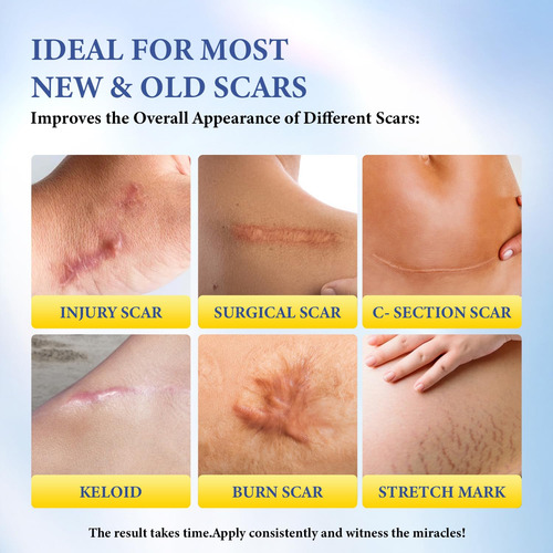 -Fórmula exclusiva de ação triplaEste creme para cicatrizes pode ajudar a acelerar o processo natural de cicatrização da cicatriz; a fórmula exclusiva de tripla ação penetra abaixo da superfície da pele para reter a umidade, ajudar na produção de colágeno e renascer novas células da pele
