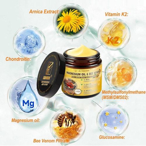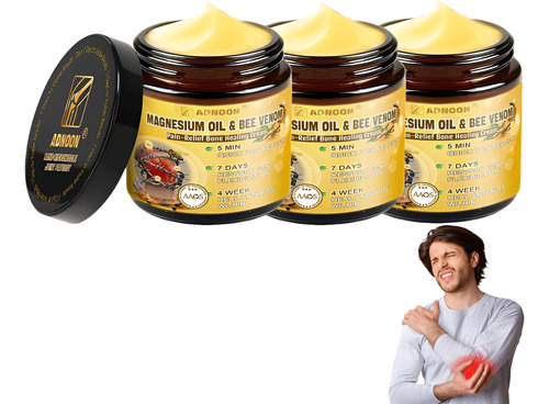 Modelo: Creme de cicatrização óssea para alívio da dor com óleo de magnésio e veneno de abelha ADNOON, creme profissional de veneno de abelha para artrite, gel de alívio da dor para pescoço, cintura, costas, mãos, pés e pernas (3 unidades)