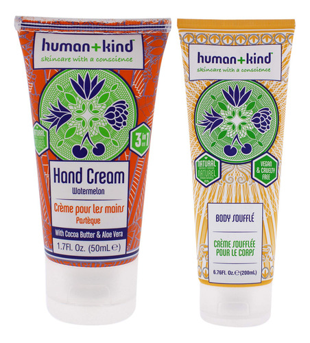 Creme Human+Kind para mãos e pés Suflê de melancia e corpo Kit de tubos unissex para 2 peças Creme de