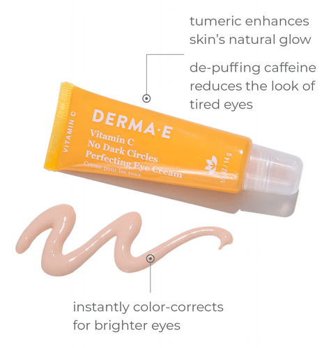 Creme aperfeiçoador de olhos DERMA-E com vitamina C sem olheiras Creme de olhos de vitamina C que corrige a cor com açafrão e cafeína para linhas finas e inchaço sob os olhos, 0,5 onças — Creme de olhos perfeito: este creme para olhos com vitamina C é infundido com vitamina C rica em antioxidantes, clareando cúrcuma, mica e desinchando a cafeína para corrigir instantaneamente a cor para olhos bem descansados e brilhantes. – Creme antienvelhecimento de vitamina C: A vitamina C tem propriedades iluminadoras e antienvelhecimento da pele; ela apoia a saúde do colágeno e ajuda a reduzir a aparência de linhas, rugas e tons de pele desiguais. – TUDO FÓRMULA NATURAL: repleta de ingredientes naturais poderosos: a cafeína ajuda a reduzir o inchaço e as olheiras, e a cúrcuma dourada ajuda a reduzir a aparência de manchas e abraça o brilho natural da pele. – CUIDADOS DIÁRIOS COM A PELE: Para obter melhores resultados, aplique uma pequena quantidade do creme de vitamina C duas vezes ao dia, de manhã e à noite; passe em movimentos circulares ao redor dos olhos, incluindo as pálpebras, até que seja absorvido. – DERMA E: limpe produtos de beleza que prejudicam os ingredientes mais eficazes da natureza. 100% veganos e livres de crueldade, nossos produtos ecologicamente éticos para o cuidado da pele não contêm parabenos, sulfatos, óleo mineral, petrolato, lanolina, glúten, soja ou OGM, e são fornecidos em embalagens recicláveis.