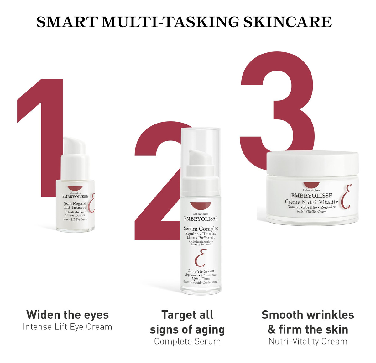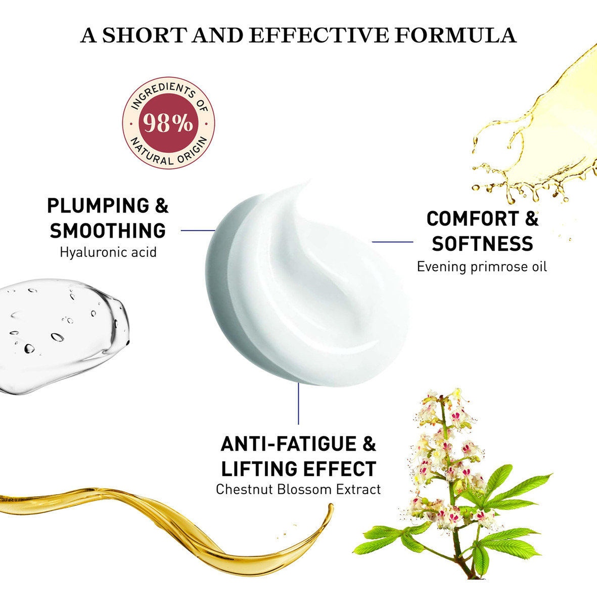 Creme para os olhos Embryolisse Intense Lift. Levanta as pálpebras, reduz rugas, círculos e bolsas. Tratamento antienvelhecimento direcionado com ácido hialurônico de 0,5 fl.oz. – Ação lifting avançada: enriquecido com extrato orgânico de flor de castanheiro, projetado para levantar e apertar a área das pálpebras – Reduz os sinais de envelhecimento: diminui eficazmente rugas, olheiras e bolsas nos olhos para uma aparência rejuvenescida e jovem – Hidratação e firmeza profundas: o ácido hialurônico e o extrato de lichia fornecem hidratação intensa e benefícios firmadores – Sensível Amigável para a pele: o efeito lifting antifadiga aperta suavemente as pálpebras para uma aparência descansada e bem acordada; sem perfume e formulado para pessoas delicadas área dos olhos – Valores sustentáveis: Formulado com ingredientes naturais em embalagens recicláveis.