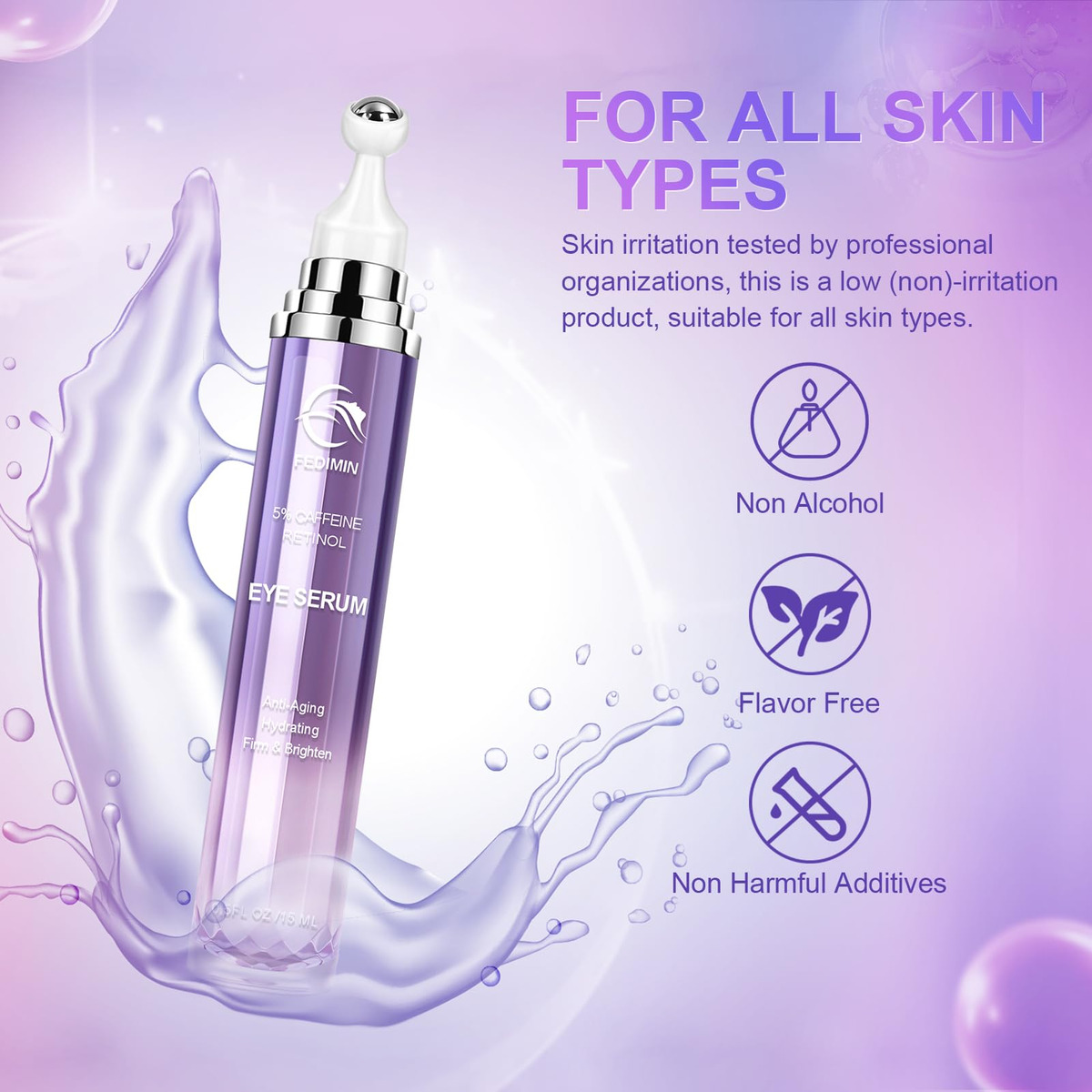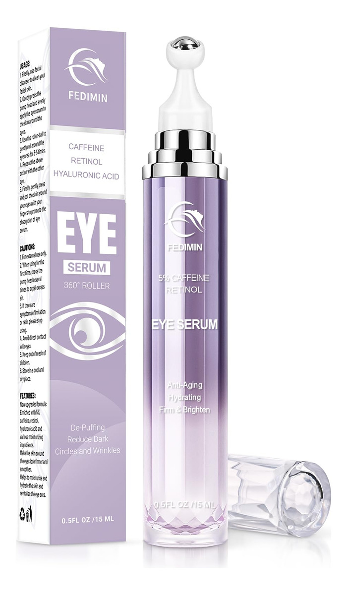 Nosso sérum para os olhos é equipado com uma esfera rolante de aço inoxidável de resfriamento 360. Rolar e massagear suavemente garante uma aplicação uniforme do sérum ocular e acelera sua absorção. O efeito refrescante também ajuda a relaxar a pele. – 360 Eye Massager Roller Ball: Nosso creme para os olhos é equipado com uma bola de rolo de aço inoxidável de resfriamento 360. Rolar e massagear suavemente garante uma aplicação uniforme do sérum ocular e acelera sua absorção. O efeito refrescante também ajuda a relaxar a pele. – Fórmula altamente eficaz: a fórmula antienvelhecimento contém 5% de cafeína, retinol, ácido hialurônico, colágeno e esqualano. Esta poderosa fórmula de creme para os olhos não apenas reduz as olheiras e o inchaço sob os olhos, mas também ajuda a tornar a pele dos olhos mais firme e jovem. – Solução para inchaço e olheiras: esta mistura de ácido hialurônico e soro para olhos com cafeína foi desenvolvida tanto para mulheres quanto para homens. Ele pode resolver com precisão o problema de olheiras e olheiras. Ideal para quem procura cuidados com os olhos. Aplique creme para olheiras duas vezes ao dia para ajudar a reduzir o inchaço e ficar radiante. – Hidratação instantânea: ingredientes hidratantes exclusivos no sérum para os olhos proporcionam uma pele mais firme e revigorada. Hidrata e hidrata a pele ao redor dos olhos para melhorar as linhas finas e rugas. Proporcione uma experiência de essência de beleza suave e macia. – Suave e adequado para todos os tipos de pele: este sérum para os olhos não é irritante. Textura suave e eficaz. Você pode combiná-lo facilmente com outros hidratantes. Eficaz na minimização das olheiras e do inchaço sob os olhos. Adequado para todos os tipos de pele, é um ótimo complemento para sua rotina de cuidados com a pele dos olhos.