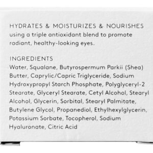 O creme para olhos Glow Triple Boost foi projetado para revelar olhos brilhantes e perfeitamente hidratados, aumentar a barreira da pele em três níveis e apoiar o microbioma. Este creme para os olhos de desempenho máximo combina esqualano, glicerina, manteiga de karité e ácido hialurônico para criar a tela perfeita para o resto de sua rotina de cuidados com a pele – O QUE É: hidrata, hidrata e nutre usando uma mistura antioxidante altamente concentrada para reabastecer a barreira cutânea e proporcionar uma pele radiante, brilhante e com aparência saudável. – PERFEITO PARA: sinais de envelhecimento cansados, opacos e visíveis. O creme para olhos Glow Triple Boost foi desenvolvido para revelar olhos brilhantes e perfeitamente hidratados, aumentar a barreira cutânea em três níveis e apoiar o microbioma. – INGREDIENTES PRINCIPAIS: Este creme para os olhos de desempenho máximo combina esqualano, glicerina, manteiga de karité e ácido hialurônico para criar a tela perfeita para o resto de sua rotina de cuidados com a pele – DERIVADO NATURAL: Naked & Thriving é vegano e cruelty certificado pela PETA Gratuito. Estamos comprometidos com as práticas ecológicas de usar garrafas de vidro recicláveis, papel certificado pelo FSC e tintas à base de vegetais. Para cada garrafa vendida, uma árvore é plantada. Feito nos EUA com ingredientes locais e globais. Ingredientes limpos para uma pele nua no domingo, que brilha na segunda-feira.