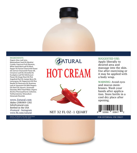 Creme Quente Zatural Organic 946ml Skin Tighting Muscle Rela