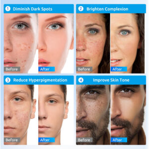Características do produto: Conheça nosso creme removedor de manchas escuras, um produto notável que oferece infinitas possibilidades para criar uma pele perfeita para você. Por meio de uma fórmula exclusiva, ele atua progressivamente em problemas de pele, como manchas escuras, manchas solares e hiperpigmentação, para minimizar sua visibilidade com ótimos resultados. O que é ainda mais surpreendente é que essa solução abrangente não apenas visa áreas problemáticas, mas também ilumina a pele em geral, trazendo a você uma beleza mais confiante do que nunca. Parâmetros do produto: Volume: 2 fl oz (60 ml) Ingredientes principais: vitamina B5, vitamina C, vitamina A, ácido hialurônico, etc. Tipo de pele adequado: adequado para todos os tipos de pele, incluindo pele sensível. Como usar: Aplique uma quantidade adequada na pele limpa do rosto todas as manhãs e noites, massageie suavemente até que seja absorvido. Faça um teste cutâneo antes de usar para evitar desconforto. Informações de embalagem: Projetamos cuidadosamente a embalagem do produto com uma caixa externa de papelão ecológica contendo um frasco de 60 ml de creme removedor de melanina. A bomba de prensa usa tecnologia de alta precisão para garantir uma liberação constante do creme. O frasco tem um formato elegante e hermeticamente fechado para garantir a qualidade estável do produto. Cada frasco vem com instruções de uso para garantir que você aproveite os benefícios corretamente. Nota: Para garantir o uso seguro, siga estas recomendações: Faça um teste cutâneo antes do primeiro uso para evitar reações alérgicas. Evite aplicar o produto na área ao redor dos olhos. Se acidentalmente entrar em contato com os olhos, lave imediatamente com água. Em caso de desconforto ou reação adversa, interrompa o uso e consulte um médico. Ao usar nosso Creme de Melanina diariamente, você experimentará uma mudança gradual em sua pele. As manchas escuras e as manchas solares diminuem gradualmente, você sentirá uma mudança impressionante na aparência rejuvenescida da pele. – Removedor profissional de manchas escuras: formulado meticulosamente para combater manchas escuras, manchas solares e pigmentação persistentes. Nossa mistura inovadora de ciência e extratos naturais promete transformações surpreendentes. – AUMENTE A CONFIANÇA COM CUIDADOS COM A PELE DE QUALIDADE: Ao usar consistentemente nosso removedor de manchas escuras, você testemunhará a redução de manchas escuras e pigmentação, resultando em um tom de pele mais brilhante e uniforme. Experimente o brilho de cuidados com a pele de alta qualidade que realçam sua beleza natural. – PARA A MAIORIA DOS TIPOS E TONS DE PELE: Nosso corretor de manchas escuras é adequado para todos os tipos de pele e deve ser usado duas vezes ao dia, de manhã e à noite. Adequado para homens e mulheres. Entendendo a importância de manter a hidratação da pele, enriquecemos esse creme com poderosos agentes hidratantes. Sua pele permanece hidratada, revelando uma textura flexível que irradia vitalidade juvenil. – RESULTADOS DE AÇÃO RÁPIDA: Na maioria dos casos, com o uso consistente deste creme facial para manchas escuras, você verá resultados visíveis em 2 a 3 meses. Devolva o brilho ao rosto e ao corpo. – REMOVEDOR DE MANCHAS ESCURAS PARA ROSTO E CORPO: Projetado para clarear manchas escuras, manchas da idade e outras formas de descoloração, este creme de remoção de manchas pode melhorar rapidamente a aparência da pele com o uso diário deste creme de remoção de manchas para rosto, corpo, pernas e parte interna das coxas.