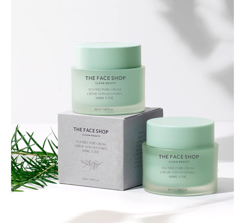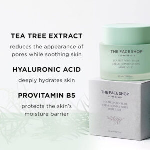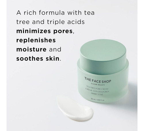 Creme de poros de melaleuca The Face Shop — Minimizador de poros, hidratante facial hidratante e calmante — AHA, BHA, PHA — Protege a barreira cutânea — Ácido hialurônico, pantenol, cica, vitamina B5 — Cuidados com a pele coreanos — Este creme acalma a pele e ajuda a reduzir o calor dentro da pele com sua fórmula adicionada ao extrato de melaleuca. – Contém ácidos triplos que ajudam a remover células mortas e impurezas da pele agride suavemente a pele. – Adicionou ácidos hialurônicos para hidratar profundamente a pele. – Formulado com beta-glucano que ajuda a fortalecer as barreiras cutâneas para peles sensíveis. – Passou no teste não comedogênico e teste de irritação da pele.