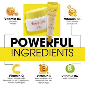 Vitamin Tree Cream é um creme perfeitamente equilibrado que hidrata profundamente a pele e reduz os sinais de envelhecimento. Sua fórmula avançada, combinada com niacinamida (vitamina B3), provitamina B5, vitamina B6, vitamina C e derivados da vitamina E, suaviza a aparência de linhas finas e rugas enquanto aumenta o brilho e a elasticidade naturais para uma pele visivelmente mais jovem. À medida que envelhecemos, a pele perde firmeza e as rugas aparecem; este creme fornece hidratação diária intensa que restaura a umidade para uma pele mais macia e suave. Ideal para uso diurno e noturno, ajuda a reduzir a acne, manchas escuras e danos causados pelo sol. Sua textura leve é rapidamente absorvida sem deixar uma sensação oleosa ou pegajosa. Ele contém Pure Medi, um ingrediente patenteado que melhora a textura da pele, e o fruto da árvore da vitamina C, rico em nutrientes que deixam a pele clara e saudável. A vitamina C, um ingrediente aprovado por dermatologistas, ajuda a retardar o envelhecimento prematuro, prevenir danos causados pelo sol e melhorar a aparência de rugas, manchas escuras e acne. Dê à sua pele uma dose diária de nutrientes essenciais e umidade para protegê-la dos danos ambientais e revitalizar sua aparência.