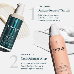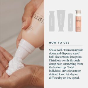 Virtue Curl-Defining Whip é um creme hidratante que oferece fixação palpável, combate o frizz e amplifica a formação de cachos. Ele fornece uma definição leve para cachos e ondas saltitantes sem a sensação crocante e pegajosa. Nosso Alpha Keratin 60ku patenteado não apenas repavimenta cutículas danificadas e reabastece rachaduras microscópicas no cabelo, mas também protege contra umidade, calor e danos ambientais. Seguro de cor, sem parabenos, sem glúten, vegano. – Alpha Keratin 60ku repara cabelos quebradiços que são mais propensos a quebrar, enquanto ingredientes nutritivos como manteiga de karité, pró-vitamina B5, extrato de linhaça e extrato de Centella Asiatica fornecem hidratação leve a uma ampla variedade de padrões de ondulação. – Manteiga de karité: nutre e hidrata os cachos para uma ótima formação de cachos – Rica em óleo de baobá: em óleos ômega-3 de vitaminas A, D, E e F, esse óleo profundamente nutritivo revitaliza os cabelos danificados e protege contra a perda de umidade e os elementos de secagem. – Extrato de semente de chia: ajuda a fornecer proteção antioxidante contra poluentes ambientais. – A Virtue Curl é a única linha de ondulação premium livre de parabenos, ftalatos, silicones, sulfatos, doadores de formaldeído e corantes sintéticos. – Nossa marca é livre de parabenos, sulfatos, ftalatos, cores e corantes sintéticos. Sem glúten. Livre de crueldade. Vegano. – Agite bem. Vire a lata de cabeça para baixo e coloque uma quantidade de produto do tamanho de uma bola de golfe na palma da mão. Distribua uniformemente pelos cabelos úmidos, amassando de baixo para cima. Torça os cachos individuais para obter uma aparência mais definida. Secar ao ar ou secar difusamente em baixa velocidade.