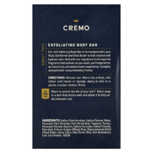 Nosso Body Bar nutritivo é formulado com Lava Rock, Semente de Aveia e Manteiga de Karité para polir, limpar e hidratar a pele. E, com nossa fragrância em várias camadas exclusiva, que evolui conforme você lava, você terá uma experiência de banho elevada e imersiva. Complexo e polido — Indiscutivelmente Cremo.