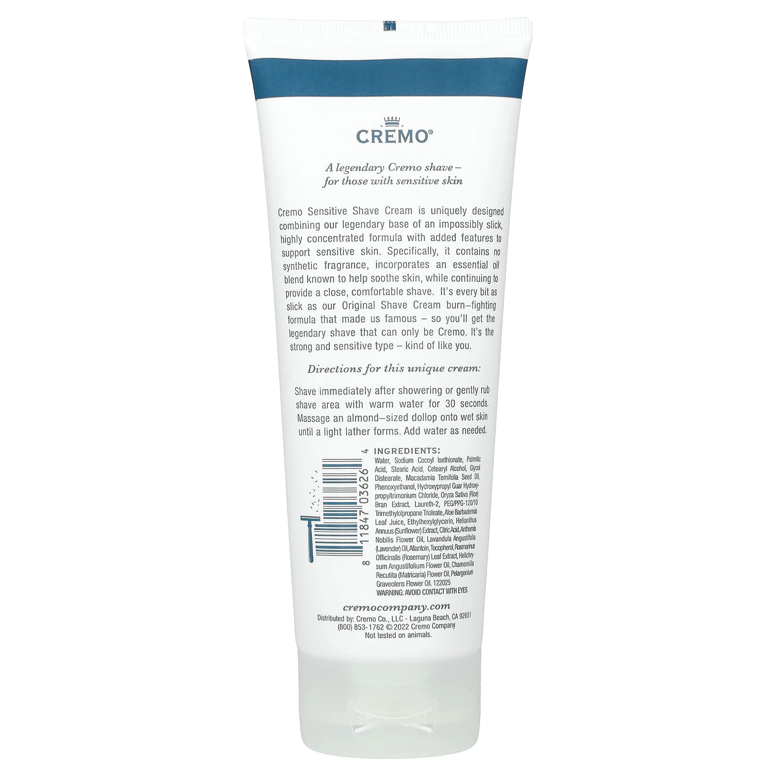 O Creme de Barbear Cremo Sensitive foi projetado exclusivamente, combinando nossa base lendário de uma fórmula incrivelmente lisa e altamente concentrada com recursos adicionais para auxiliar peles sensíveis. Especificamente, não contém fragrância sintética, incorpora uma mistura de óleos essenciais conhecida por ajudar a acalmar a pele, ao mesmo tempo que proporciona um barbear rente e confortável. É tão elegante quanto nossa fórmula de combate a queimaduras com Creme de Barbear Original que nos fez famosos, para que você faça o barbear lendário que só pode ser Cremo. É o tipo forte e sensível, como você.