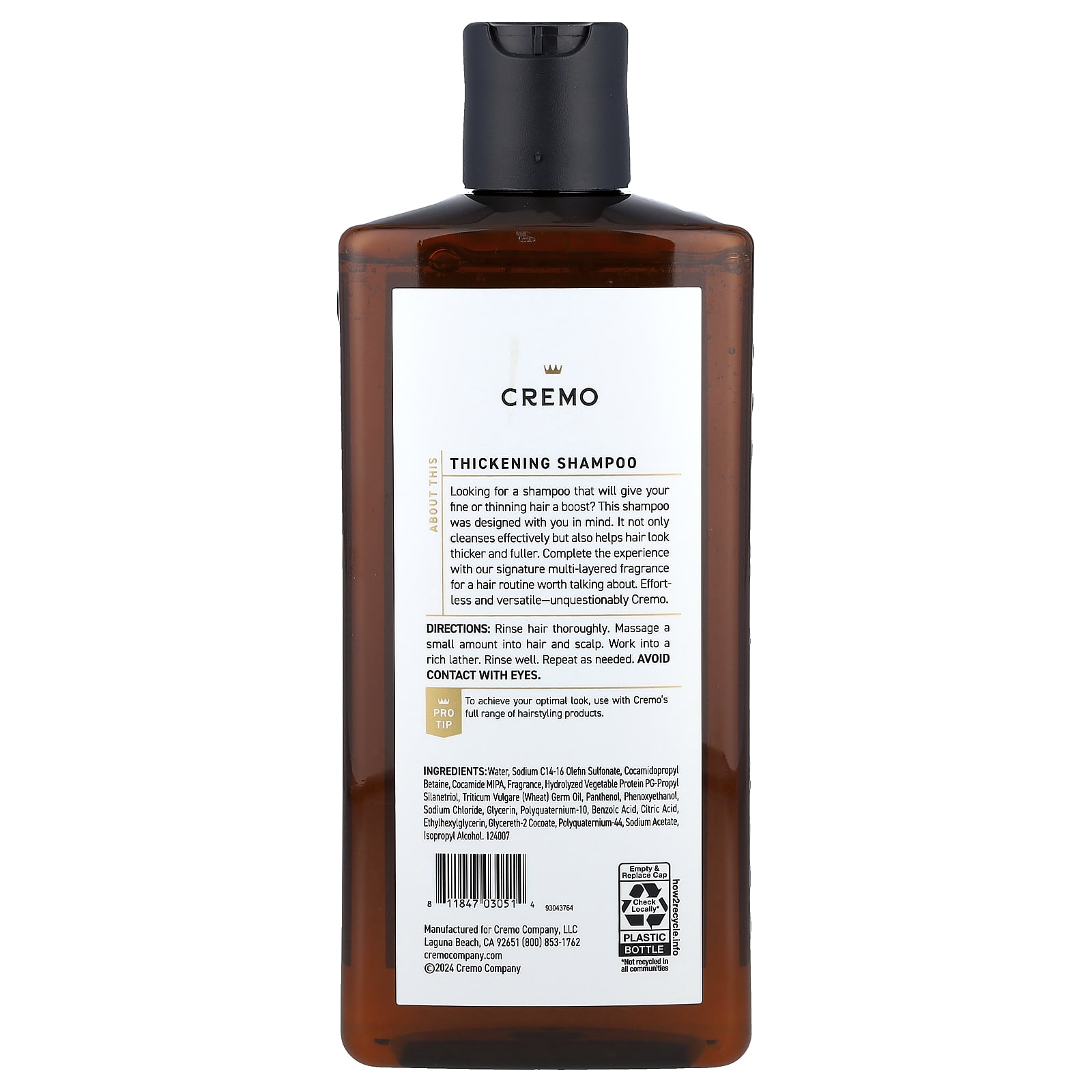 Procurando um shampoo para dar um reforço aos seus cabelos finos ou ralos? Este shampoo foi desenvolvido pensando em você. Além de limpar de forma eficaz, ele também ajuda a deixar os cabelos mais espessos e volumosos. Conclua a experiência com nossa fragrância exclusiva em várias camadas para uma rotina capilar que vale apena mencionar. Fácil e versátil: indiscutivelmente Cremo.