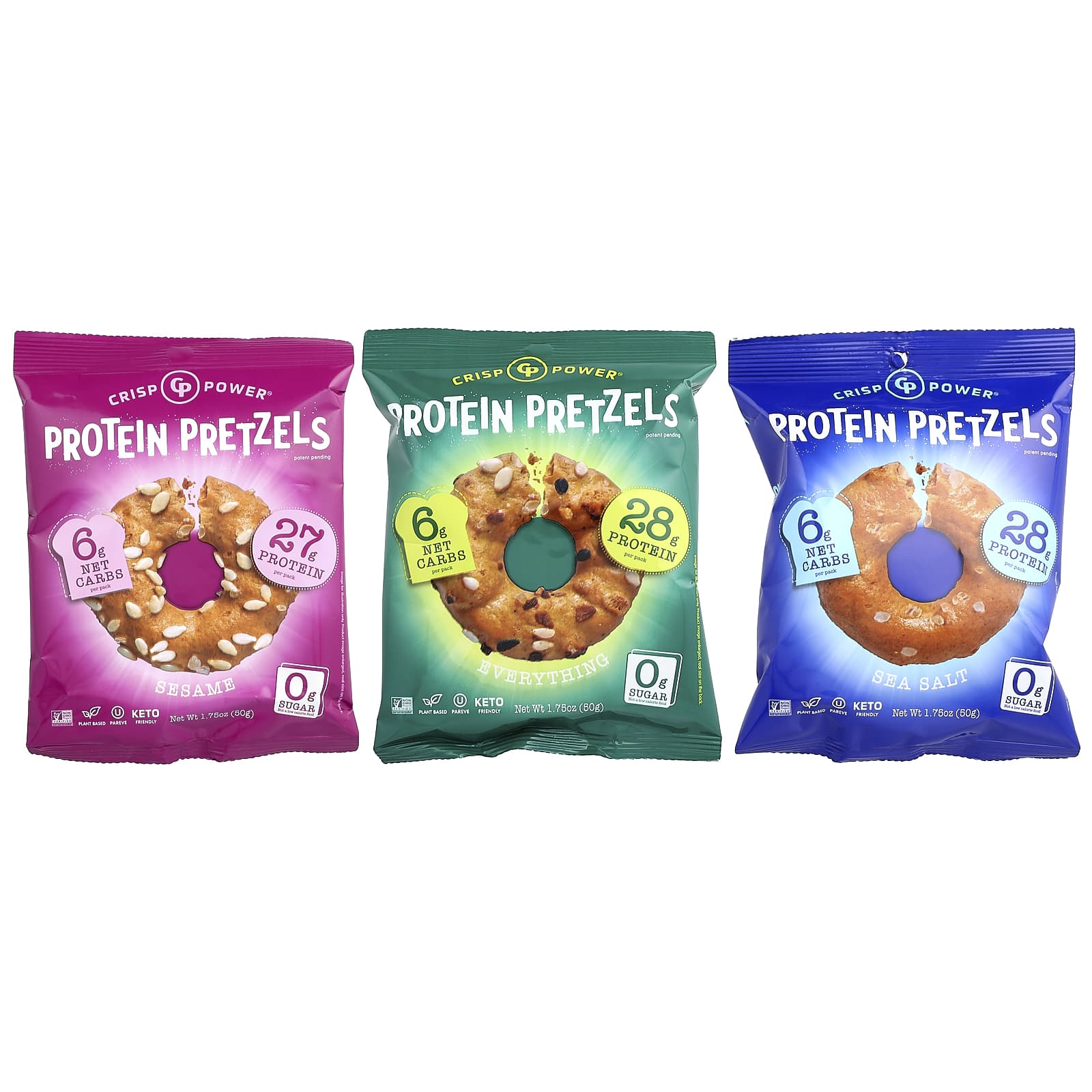 Crisp Power Pretzels de Proteína Embalagem Sortida 6 Sacos 50 g (175 oz) Cada – Crisp Power Nutrição Esportiva Barrinhas e snacks esportivos Snacks proteicos Pretzels proteicos Alimentos Petiscos e lanches Pretzels.