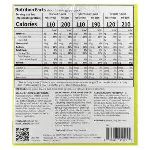 Ingredientes do sabor gergelim: Proteína de trigo hidrolisada, fibra de dextrina (milho), proteína da semente de alfarroba, isolado proteico de soja, óleo de coco, sementes de gergelim, sal, extrato de malte de cevada, páprica, lecitina de soja, glúten de trigo, amido de milho, concentrado de frutas dos monges, fermentação (bicarbonato de sódio, pirofosfato de sódio), extrato de alecrim, hidróxido de sódio.