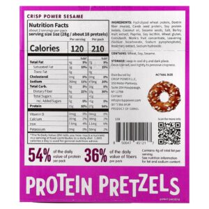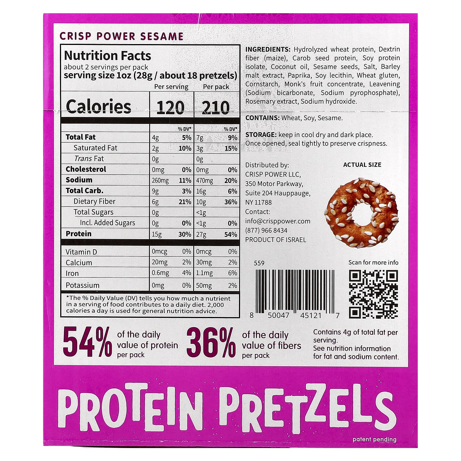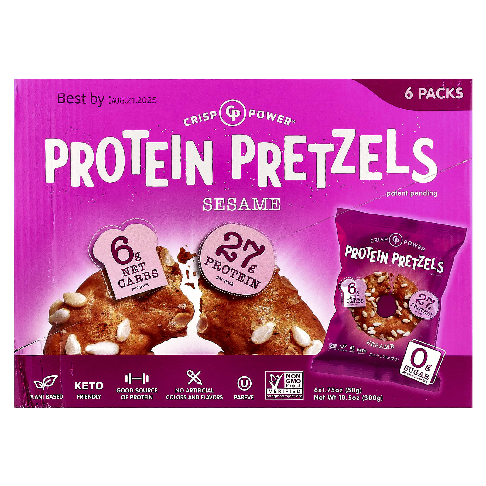 Crisp Power Pretzels de Proteína Gergelim 6 Sacos 50 g (175 oz) Cada – Crisp Power Nutrição Esportiva Barrinhas e snacks esportivos Snacks proteicos Pretzels proteicos Alimentos Petiscos e lanches Pretzels.