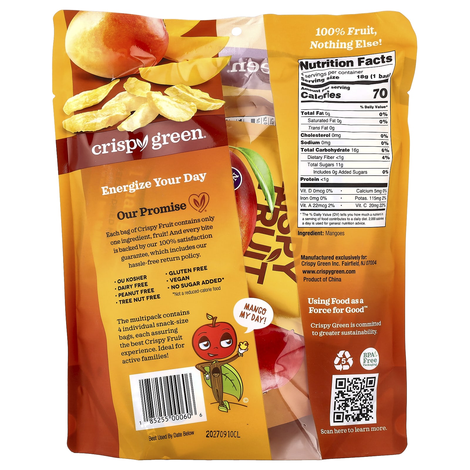 Crispy Green Crispy Fruit Totalmente Manga 4 Pacotes 18 g (063 oz) Cada – Crispy Green Alimentos Petiscos e lanches Frutas e Legumes Secos Manga.
