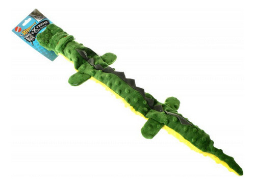 Os Skinneez Extremes apresentam forro de malha Rip Stop para maior resistência. Reforçado com 2 camadas para maior durabilidade. O tecido com covinhas aumenta a resistência. Recheio grátis. Contém 3 guinchos gigantes que rangem mesmo quando perfurados. Personagem divertido de crocodilo.