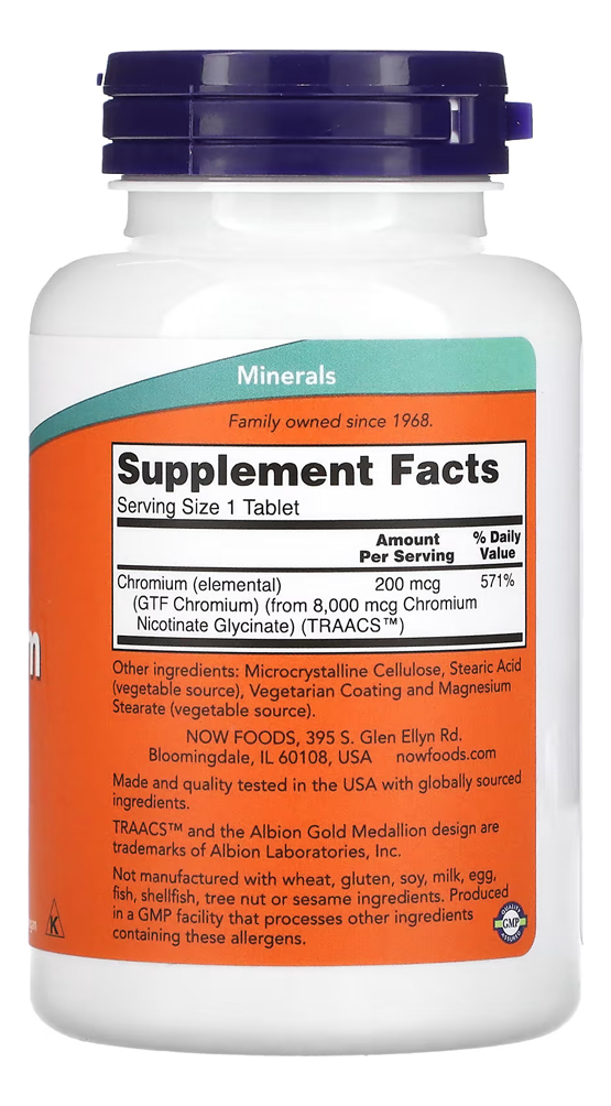 Cromo Gtf 200mcg Forma Ativa Now Foods 250Tabs Produto Importado