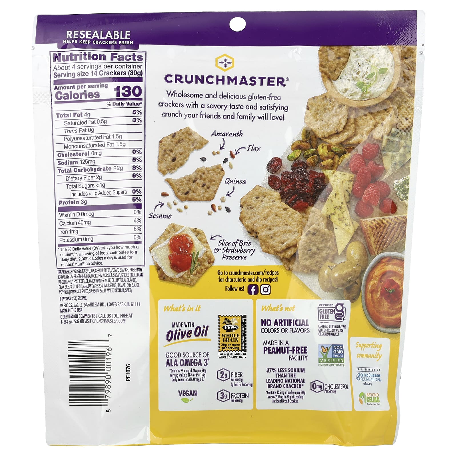 Crunchmaster Multisementes Crocantes Biscoitos de Arroz Assado Alecrim e Óleo de Oliva 113 g (4 oz) – Crunchmaster Alimentos Petiscos e lanches Biscoitos salgados.