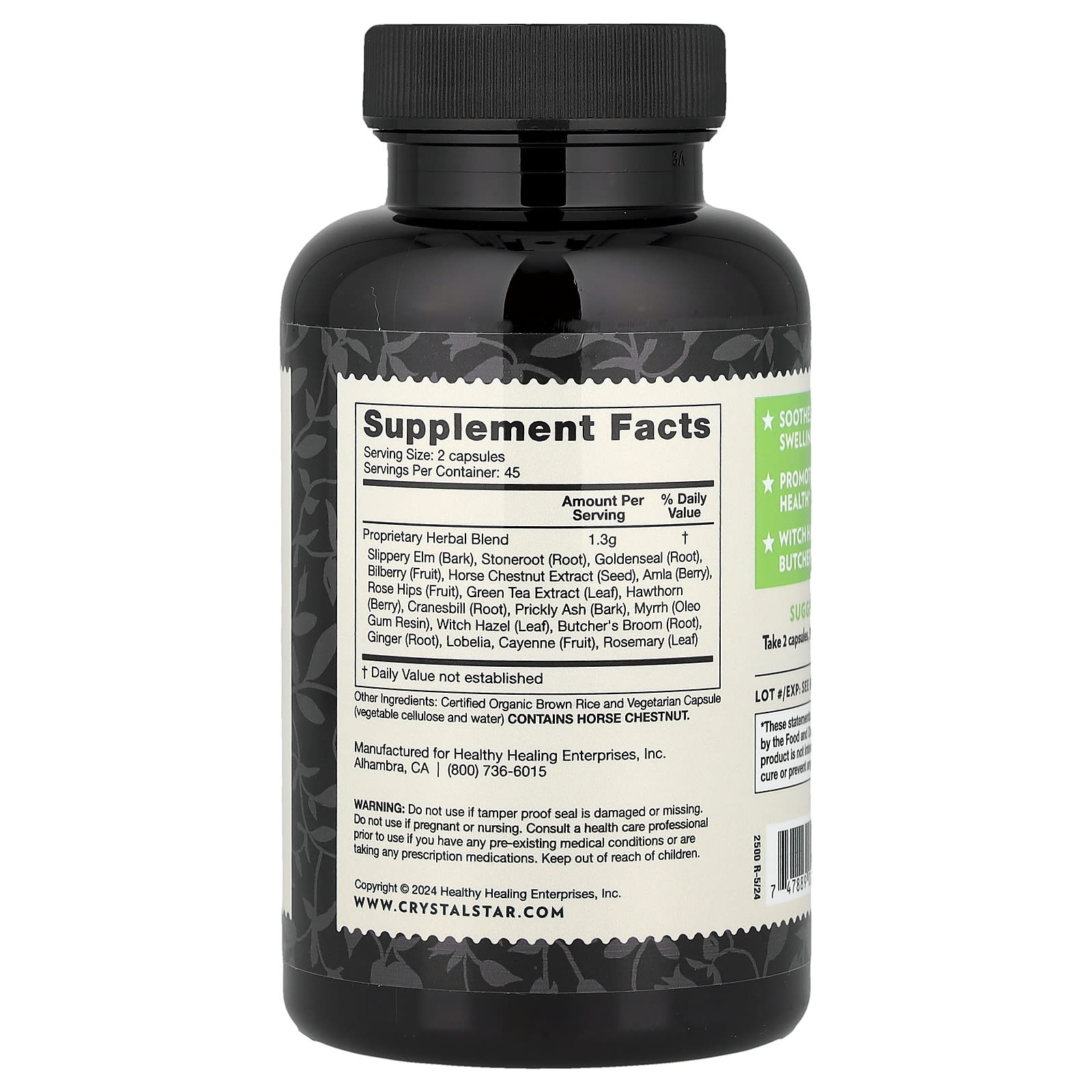 | Mistura de Ervas Patenteada Olmo Escorregadio (Casca), Stoneroot (Raiz), Hidraste (Raiz), Mirtilo Europeu (Fruta), Extrato de Castanha-da-Índia (Semente), Amla (Baga), Rosa-Mosqueta (Fruta), Extrato de Chá Verde (Folha), Espinheiro (Baga) , Geranium sylvaticum (Raiz), Cinza Espinhosa (Casca), Mirra (Resina de Goma de Óleo), Hamamélis (Folha), Brusca (Raiz), Gengibre (Raiz), Lobélia, Pimenta Caiena (Fruta), Alecrim (Folha) |