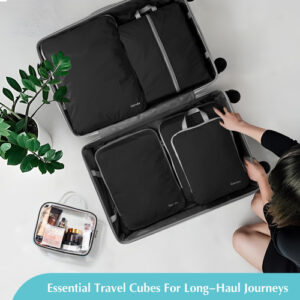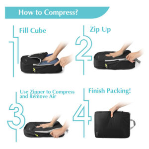 – Material de nylon macio: o nylon rip-stop ultramacio leve com alta densidade e extensibilidade, junto com o zíper liso, torna este conjunto de cubos de compressão extremamente durável quando cheio de itens essenciais. – Cubos de embalagem que economizam espaço: os zíperes duplos do cubo de embalagem comprimem perfeitamente as roupas e ajudam a economizar até 30% de espaço em sua bagagem de mão ou viagem mochila. É um excelente equipamento de viagem para minimizar o tamanho da bagagem de mão. A alça rápida permite fácil acesso ao retirar cubos embalados de uma mala ou mochila.