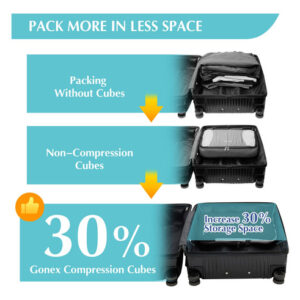 Cubos de embalagem de compressão Gonex, armazenamento expansível, organizadores de malas de viagem com bolsa de sapatos, bolsa de higiene transparente (preta)