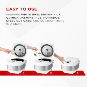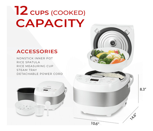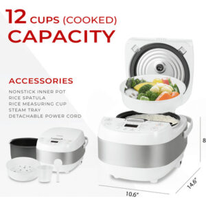 Capacidade média a grande: a panela de arroz de 6 xícaras (12 xícaras cozidas) oferece a quantidade perfeita para porções pequenas ou famílias de pequeno a médio porte