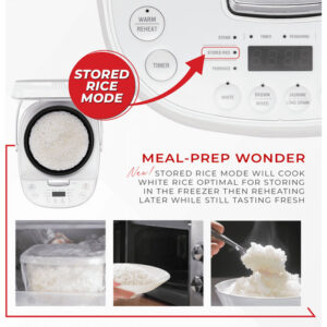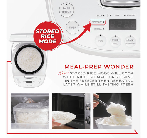 13 modos versáteis: escolha entre 13 opções de menu, incluindo arroz branco (glutinoso), jasmim/grão longo e mingau com vapor e opções de reaquecimento na ponta dos dedos