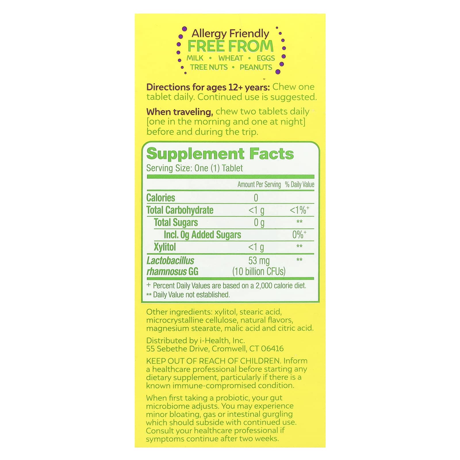 | Lactobacillus rhamnosus GG | 53 mg (10 bilhões de UFCs) |