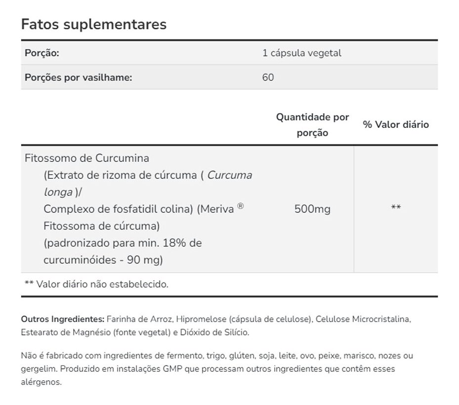 2. Formato Conveniente de Cápsulas: A apresentação em cápsulas de 500mg torna o consumo da Curcumina Fitossomo simples e preciso. Esta forma prática permite uma dosagem exata e fácil ingestão, ideal para quem valoriza a comodidade no uso diário de suplementos.