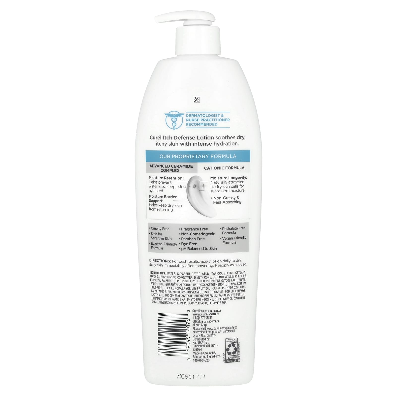 Curel Itch Defense Loção Calmante para Pele Seca e Irritada Sem Perfume 591 ml (20 fl oz) – Curel Cuidados Pessoais Cuidados com o Corpo Loção Armário do Banheiro Tratamento para Pele Pele Seca e Erupções Cutâneas.
