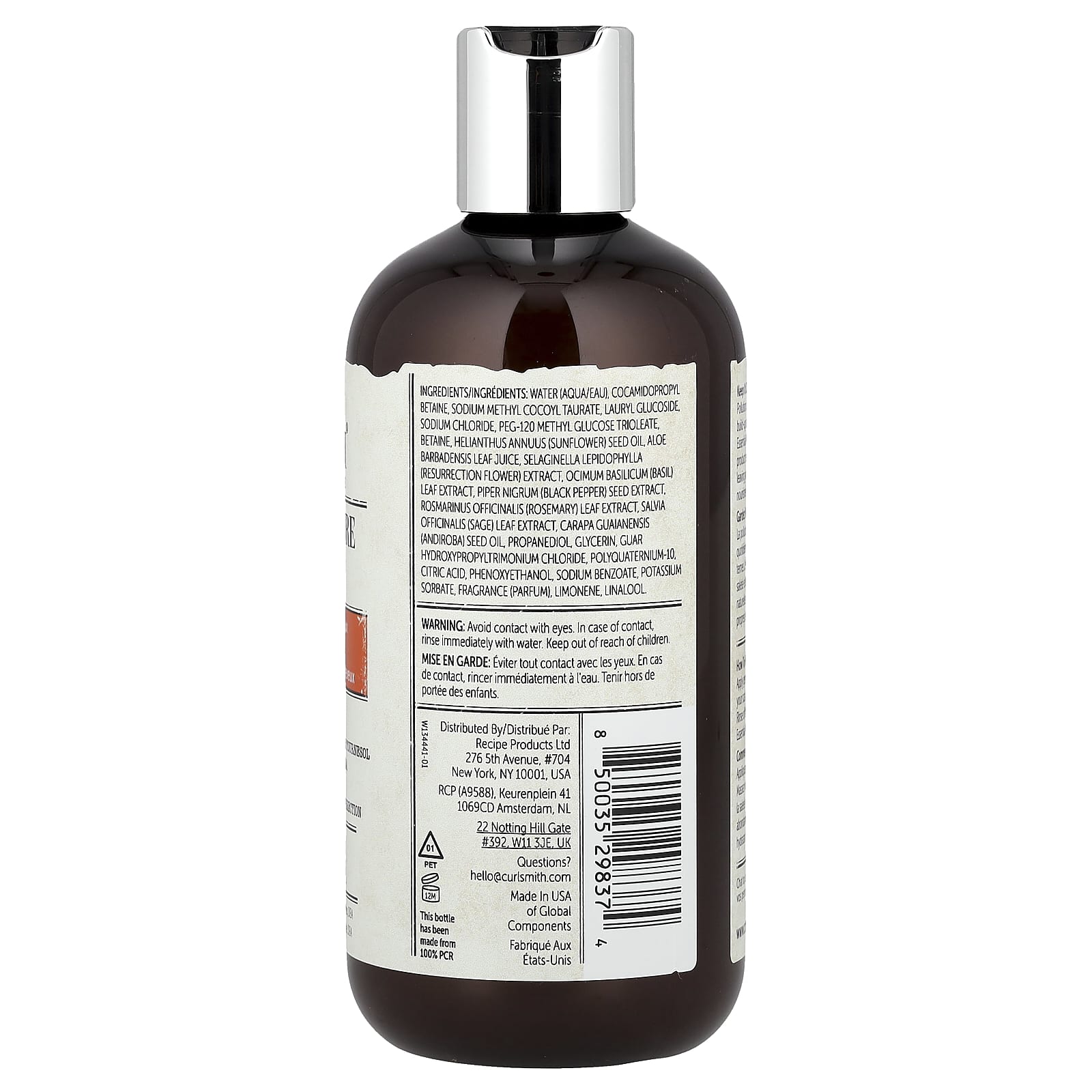 Água (aqua/eau), cocoamidopropilbetaína, sodium methyl cocoyl taurate, lauryl glucoside, cloreto de sódio, trioleato de glicose peg-120, betaína, óleo da semente de Helianthus annuus (girassol), suco da folha de Aloe barbadensis, extrato de Selaginella lepidophylla (flor da ressurreição), extrato da folha de Ocimum basilicum (manjericão), extrato da semente de Piper nigrum (pimenta-do-reino), extrato da folha de Rosmarinus officinalis (alecrim), extrato da folha de Salvia officinalis (sálvia), óleo da semente de Carapa guaianensis (andiroba), propanediol, glicerina, guar hydroxypropyltrimonium chloride, poliquatérnio-10, ácido cítrico, fenoxietanol, benzoato de sódio, sorbato de potássio, fragrância (perfume), limoneno, linalol.