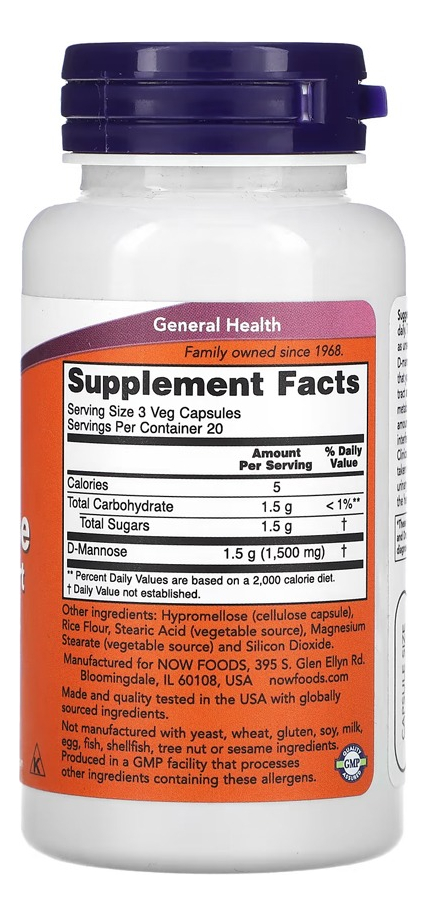 D-manose 500mg Now Foods 60 CápsulasProduto Importado