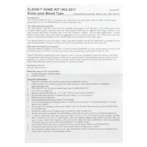 O ELDON HOME KIT 2511 é um kit de autoteste para determinar seu tipo sanguíneo dentro dos sistemas de grupos sanguíneos AB0 e RhD em um ELDONCARD 2511 com um teste por cartão.