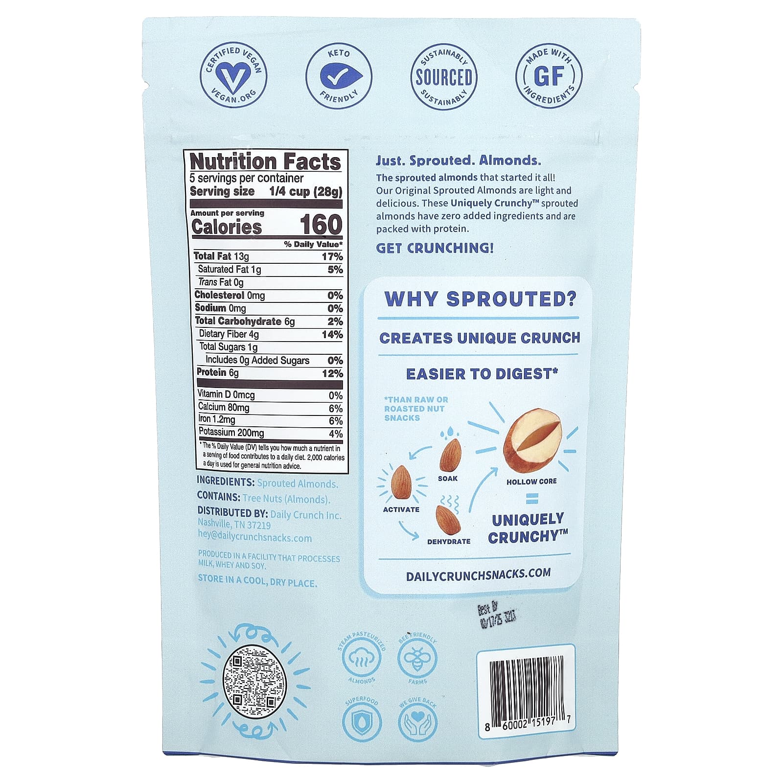 As amêndoas germinadas que começaram tudo! Nossas Amêndoas Germinadas Originalmente Germinadas são leves e deliciosas. Essas amêndoas germinadas Uniquely Crunchy™ não contêm ingredientes adicionados e são repletas de proteínas. Torne-se crocante!