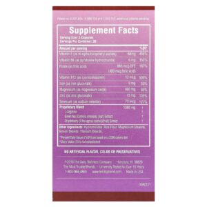 Uma mistura nutricional cientificamente validada que ajuda a melhorar a saúde e a fertilidade. Vitex agnus-castus (erva de agnocasto) contribui para o equilíbrio hormonal adequado e a ovulação normal. Os antioxidantes chá verde, vitamina E e selênio ajudam a melhorar a saúde reprodutiva. O aminoácido L-arginina ajuda a manter o revestimento uterino saudável. As vitaminas B6 e B12, o ácido fólico, o ferro, o magnésio e o zinco também ajudam a manter a fertilidade. Quantidades adequadas de ácido fólico podem reduzir o risco de defeitos congênitos do tubo neural quando consumidos como parte de uma dieta saudável – antes e durante o início da gravidez.