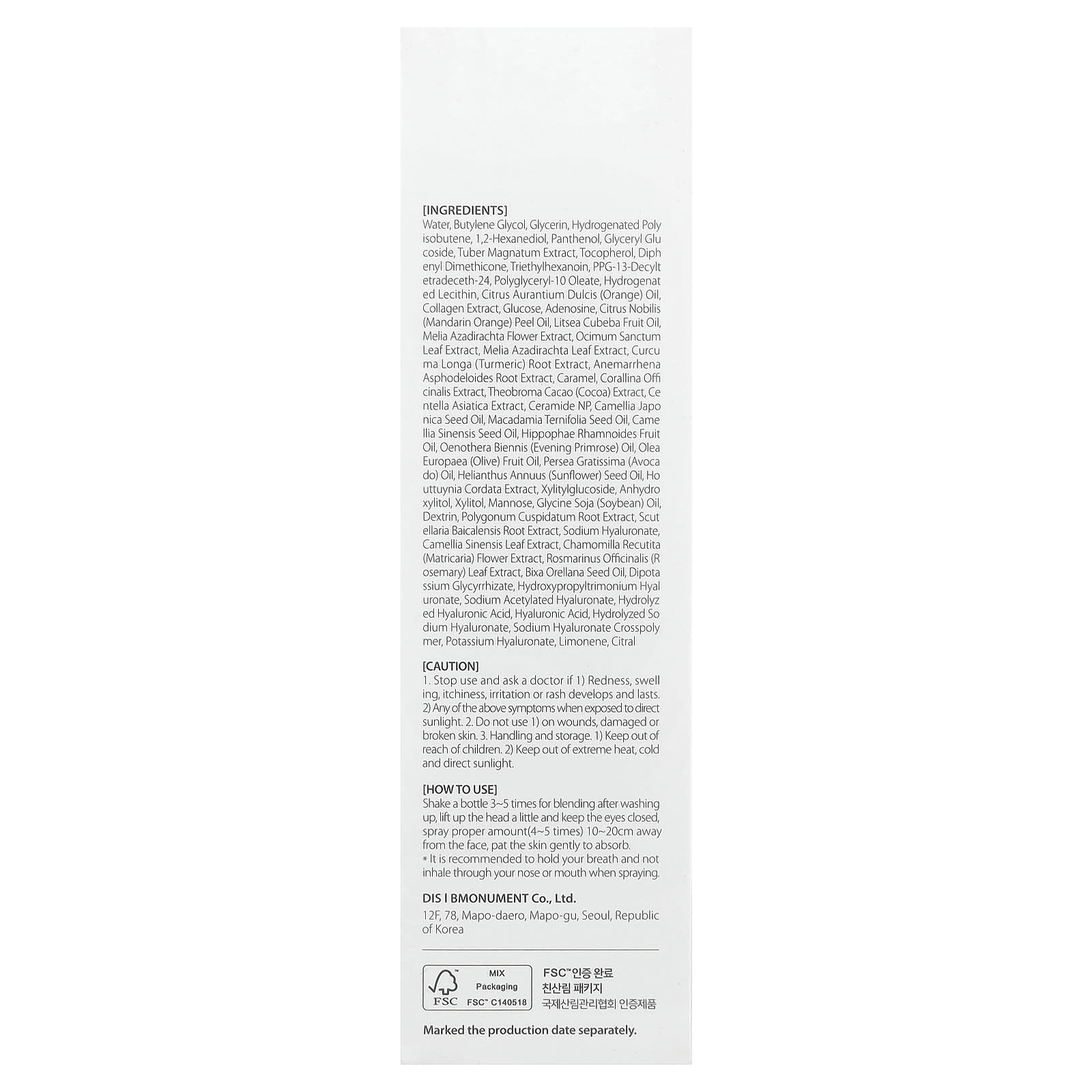 Agite o frasco de 3 a 5 vezes para misturar após a lavagem. Erga um pouco a cabeça e mantenha os olhos fechados. Borrife a quantidade adequada (4 a 5 vezes) a 10 a 20 cm de distância do rosto e dê tapinhas na pele suavemente para absorver. É recomendável segurar a respiração e não inalar pelo nariz ou boca ao borrifar.
