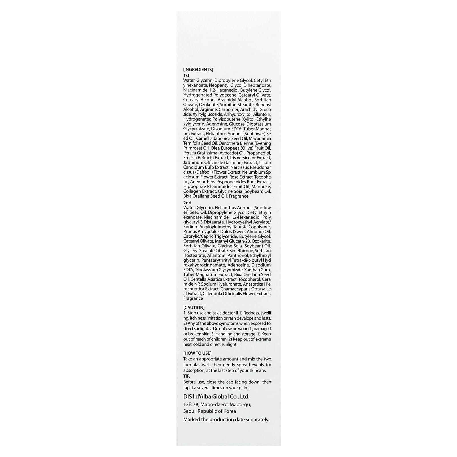1º: Água, glicerina, dimetildietilenoglicol, etilcaproato de cetila, neopentyl glycol diheptanoate, nicotinamida, 1,2-hexanediol, butilenoglicol, hydrogenated polydecene, cetearyl olivate, álcool cetoestearílico, arachidyl alcohol, sorbitan olivate, ozocerita, estearato de sorbitana, behenyl alcohol, arginina, carbômero, arachidyl glucoside, xylitylglucoside, anhydroxylitol, alantoína, poliisobuteno hidrogenado, xilitol, ethylhexylglycerin, adenosina, glicose, dipotassium glycyrrhizate, edetato dissódico, extrato de Tuber magnatum, óleo da semente de Helianthus annuus (girassol), óleo da semente de Camellia japonica, óleo da semente de Macadamia ternifolia, óleo de Oenothera biennis (prímula), óleo da fruta de Olea europaea (azeitona), óleo de Persea gratissima (abacate), propanediol, extrato de Freesia refracta, extrato de Iris versicolor, extrato de Jasminum officinale (jasmin), extrato do bulbo de Lilium candidum, extrato da flor de Narcissus pseudonarcissus (narciso), extrato da flor de Nelumbium speciosum, extrato de rosa, tocoferol, extrato da raiz de Anemarrhena asphodeloides, óleo da fruta de Hippophae rhamnoides, dextromanose, extrato de colágeno, óleo de Glycine soja (soja), óleo da semente de Bixa orellana, fragrância.