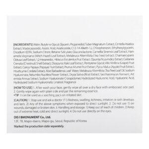 Água, butylene glycol, glicerina, propanediol, extrato de Tuber magnatum, extrato de Centella asiatica, madecassoside, asiatic acid, asiaticosídeo, C12-14 alketh-12, clorfenesina, ethylhexylglycerin, edetato dissódico, citrato de sódio, salicilato de betaína, gluconolactone, extrato da folha de Camellia sinensis, extrato da folha de Hamamelis virginiana (hamamélis), extrato de Melaleuca alternifolia (melaleuca), extrato da folha de Chamaecyparis obtusa, 1,2-hexanediol, extrato do fruto de Hibiscus esculentus, extrato de Opuntia ficus-indica, extrato da casca de Castanhas crenata (castanha), extrato da folha de Diospyros kaki, pentilenoglicol, extrato da fruta de Vitis vinifera (uva), extrato da fruta de Carica papaya (mamão), extrato da fruta de Prunus mume, extrato da fruta de Pyrus malus (maçã), extrato de Houttuynia cordata, água da folha de Aloe barbadensis, óleo da folha de Melaleuca alternifolia (melaleuca), hialuronato de sódio, extrato da flor de Nelumbo nucifera, extrato de Oryza sativa (arroz), fermento de Saccharomyces, extrato de Artemisia annua, sodium hyaluronate crosspolymer, ácido hialurônico hidrolisado, ácido hialurônico, hialuronato de sódio hidrolisado, linalol, fragrância.