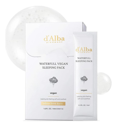 PRODUTO: dAlba Italian White Truffle Waterfull Vegan Sleeping Pack, máscara facial não lavável durante a noite, tipo gel portátil para retenção de umidade, seguro para peles sensíveis, cuidados com a pele coreanos