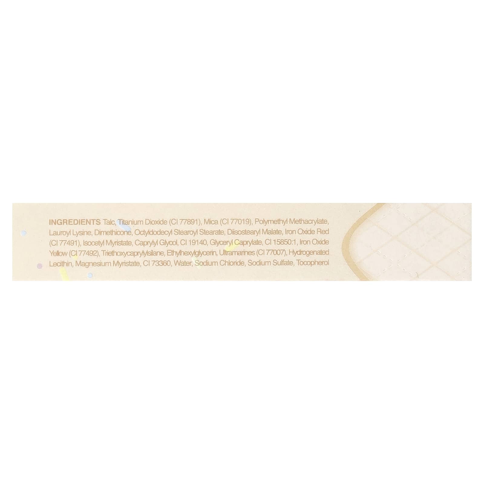 Talco, dióxido de titânio (CI 77891), mica (CI 77019), polymethyl methacrylate, lauroil lisina, dimeticona, octyldodecyl stearoyl stearate, diisostearyl malate, vermelho óxido de ferro (CI 77491), isocetyl myristate, caprylyl glycol, CI 19140, caprilato de glicerila, CI 15850:1, amarelo de óxido de ferro (CI 77492), triethoxycaprylylsilane, ethylhexylglycerin, ultramarines (CI 77007), lecitina hidrogenada, miristato de magnésio, CI 73360, água, cloreto de sódio, sulfato de sódio, tocoferol.