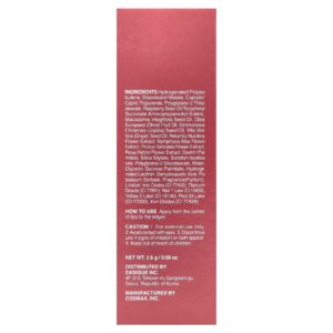 Poli-isobutileno hidrogenado, diisostearyl malate, triglicerídeo cáprico/caprílico, monoestearato de poliglicerila-2 triiso, óleo da semente de framboesa/succinato de tocoferol, aminopropanodiol ésteres, óleo da semente de Macadamia integrifolia, óleo da fruta de Olea europaea (azeitona), óleo da semente de Simmondsia chinensis (jojoba), óleo da semente de Vitis vini fera (uva), extrato da flor de Nelumbo nucifera, extrato da flor de Nymphaea alba, extrato da flor de Prunus serrulata, extrato da flor de Rosa hybrida, palmitato de dextrina, sililato de sílica, taxa de isostea de sorbitano, polyglyceryl-2 diisostearate, água, glicerina, palmitato de sacarose, lecitina hidrogenada, dehydroacetic acid, sorbato de potássio, fragrância (perfume) linalol, óxidos de ferro (CI 77492), dióxido de titânio (CI 77891), vermelho 7 laca de cálcio (CI 15850), tartrazina laca de alumínio (CI 19140), vermelho 33 laca de alumínio (CI 17200), óxidos de ferro (CI 77499).