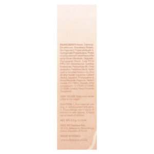 Água, difenil dimeticona, malato de diisoestearila, bis-diglicerila poliaciladipato-2, poli-isobutileno hidrogenado, fitoesterol/isoestearil/cetil/estearil/behenyl dimer dilinoleate, diglicerina, dipropilenoglicol, peg cetílico/ppg-10/1 dimeticona, isostearato de sorbitana, polissorbato 60, octildodecanol, pentilenoglicol, Copolímero de acriloil dimetil taurato de sódio e acrilato de hidroxietil, álcool cetoestearílico, esqualano, fenoxietanol, benzoato de benzila, fragrância, dióxido de titânio (c) glicerina, ethylhexylglycerin, Cl 17200, GI 19140 CI 15985, linalol, hexil cinamal, tocoferol.