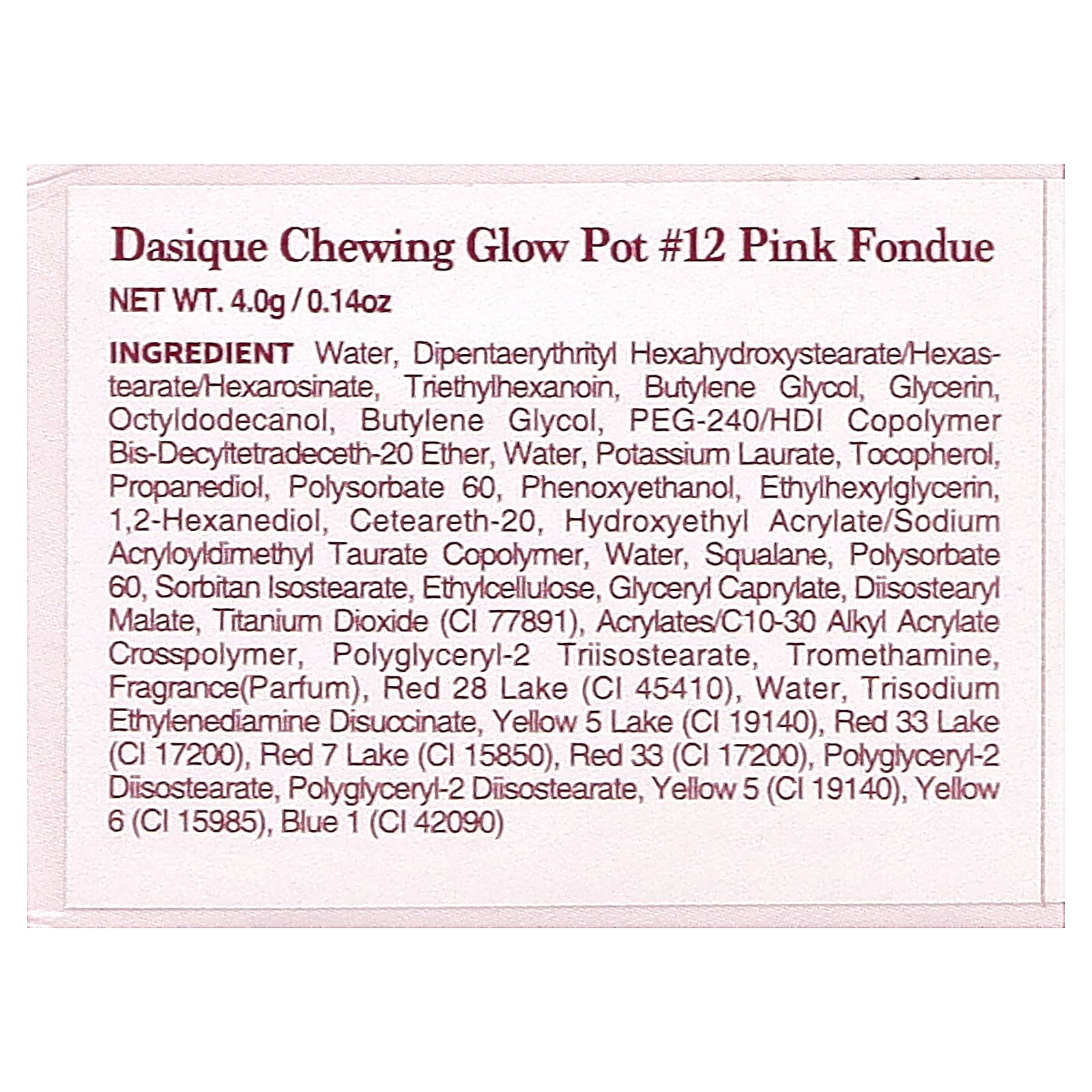 Dasique Mastigável Glow Pot 12 Fonture Rosa 4 g (014 oz) – Dasique Beleza Maquiagem Lábios Gloss labial Rosto Blush.
