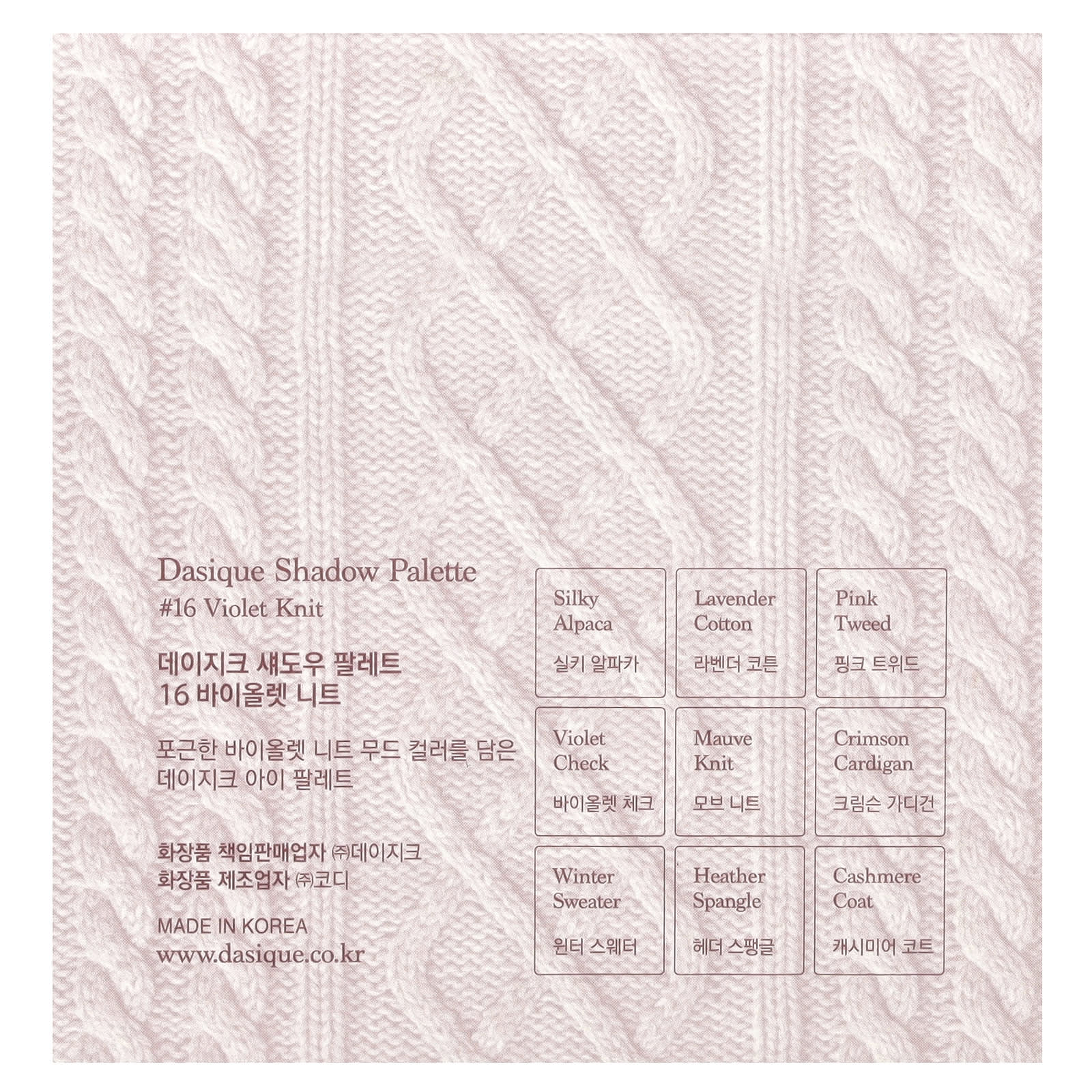 Dasique Paleta de Sombras 16 Knit Violeta 1 Unidade – Dasique Beleza Maquiagem Olhos Sombra Sombras K-Beauty.