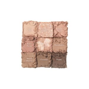 Uma paleta de sombras suave e clássico com os tons quentes e profundos de nozes torradas.