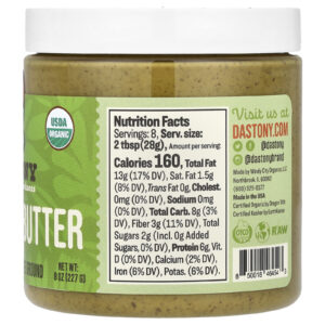 Dastony Manteiga de Pistache Orgânica Ultrasuave 227 g (8 oz) – Dastony Alimentos Condimentos, molhos e pastas Manteigas e Pastas de Nozes.