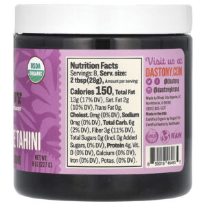 Dastony Tahine de Gergelim Preto Torrado Orgânico Ultrasuave 227 g (8 oz) – Dastony Alimentos Condimentos, molhos e pastas Manteigas e Pastas de Nozes Tahini.