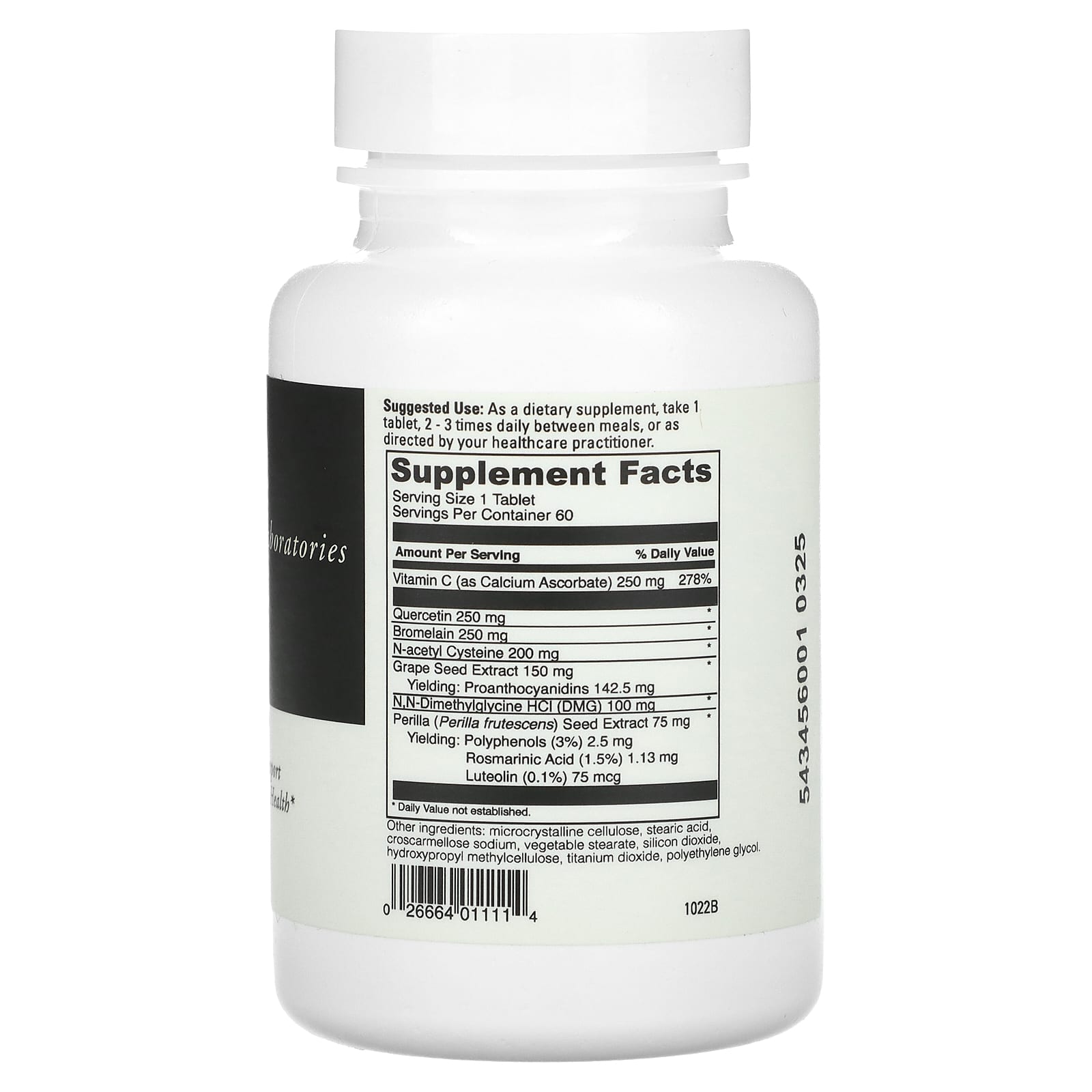 Aller-DMG ™ contém nosso DMG (N, N-Dimethylglycine) para auxiliar o funcionamento adequado dos Sistemas Imunológico e Respiratório junto com Extratos de Semente de Quercetina, Perila e Uva para promover uma resposta saudável à histamina. * Também adicionamos Vitamina C tamponada. (Ascorbato de Cálcio) como antioxidante. * Nenhuma outra fórmula no mercado contém todos esses nutrientes bem pesquisados combinados em uma única fórmula excelente.
