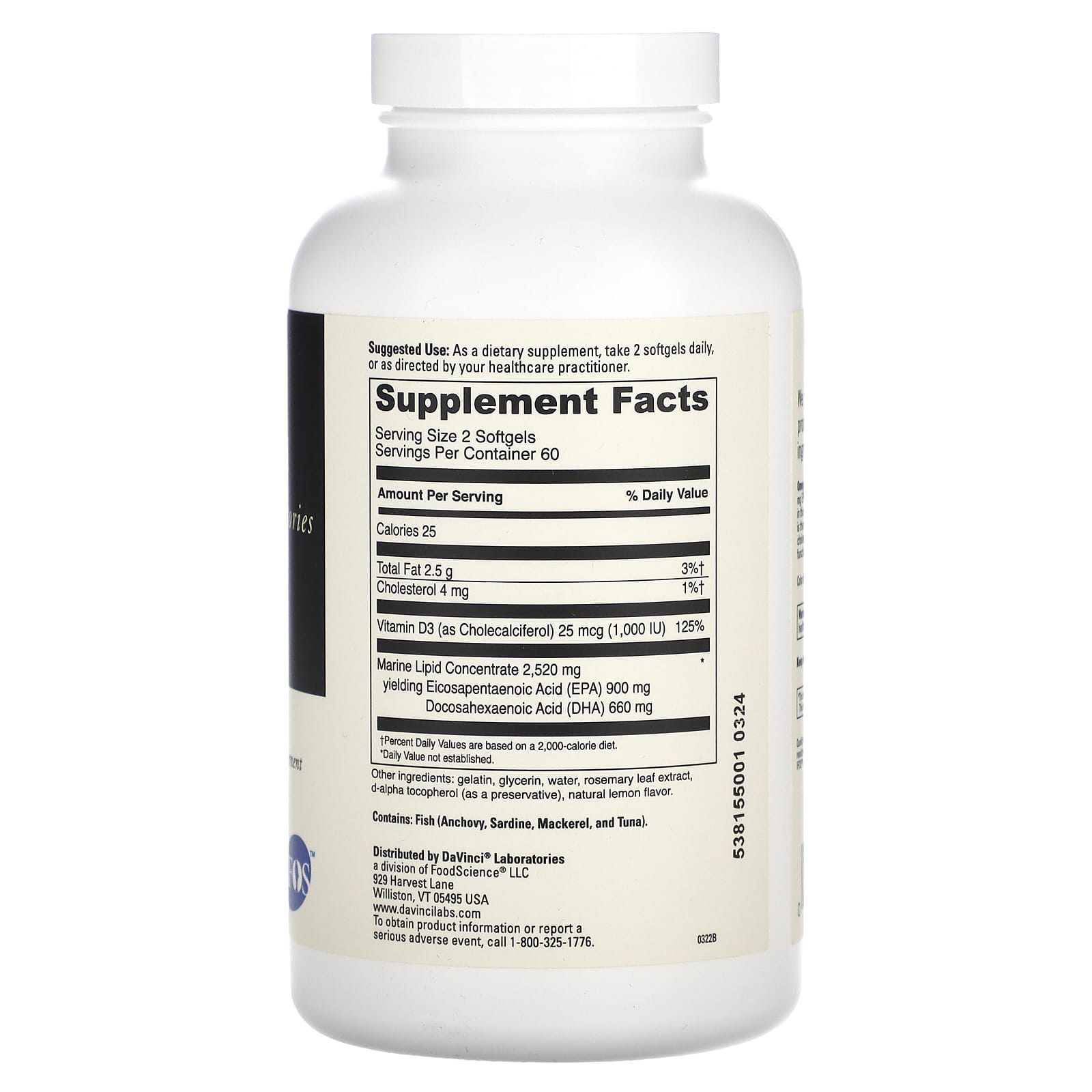 DaVinci Laboratories Ômega 3 HP-D 120 Cápsulas Softgel – DaVinci Laboratories Suplementos Ômegas e Óleos de Peixe (EPA/DHA) Ômega 3 e Óleo de Peixe.